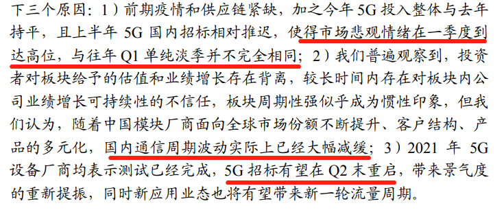 ②从国内电信市场来看,固网端PON模块迎来旺季,5G招标有望在二季度末进行,大规模发货和建设在三季度出现。