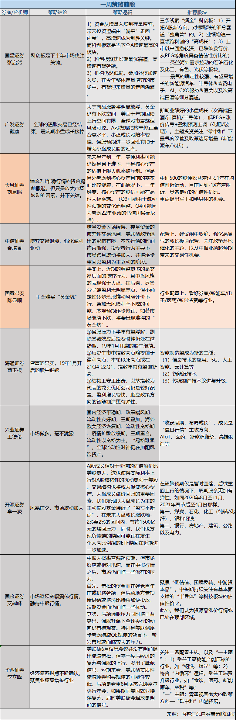 本周策略分析师观点总体认为指数上下空间有限,依旧是震荡的格局。不过,科创板、中报预增是较为一致看好的方向。