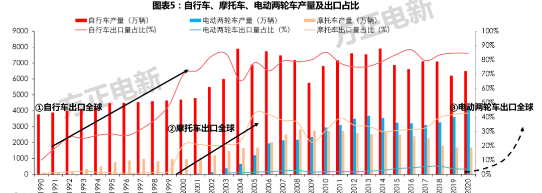 目前我国电动两轮车年产量约4000万,出口占比不足5%。