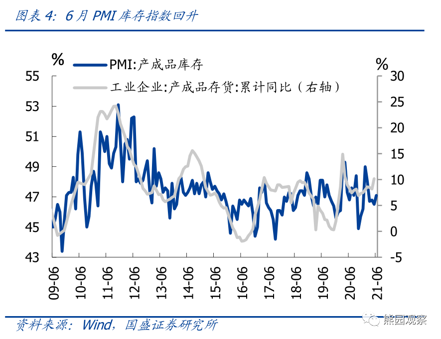 3)价格明显回落,6月PPI同比可能小幅回落至8.5%左右,库存如期回补。