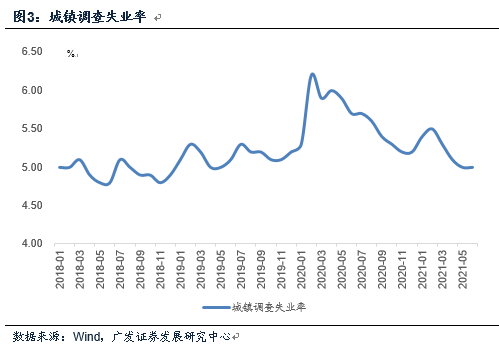 6月城镇调查失业率为5.0%,持平于5月的本轮低点。这一表现亦算不错,2019年之后这一指标也没有触及过5%以下的位置。