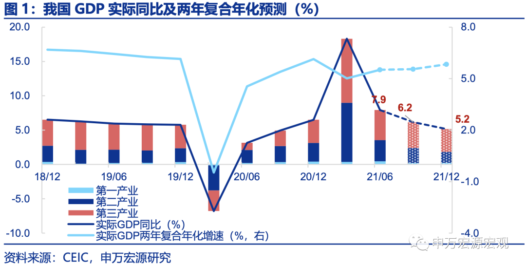 首先应看到,本次政治局会议对上半年经济情况的回顾定调是稳定,而4月回顾开年经济工作定调为“开局良好”,时隔一个季度,政治局会议的关注点正在向一些结构性偏弱的潜在风险侧重。会议回顾上半年经济工作的部分,整体定调是稳定,称上半年“有效实施宏观政策,经济持续稳定恢复、稳中向好”。而在一个季度前,对一季度经济情况的回顾则是明确称“有力实施宏观政策”,“经济恢复取得明显成效,经济运行开局良好”,本次会议明显转为较为谨慎的定调。事实上,政治局会议的回顾定调往往带有对未来增长可持续性的方向性判断,因而才出现了一季度实际GDP两年复合增长尽管只有5.0%,但因展望未来三季度将迎来再度改善,因而积极的一季度回顾定调实际上表达出当时对年内经济增长的整体信心。但二季度以来,包括大宗商品价格飙升抑制消费和投资需求、外部环境趋于复杂外需或将降温、产业链安全性受到更严峻考验等结构性风险点逐步涌现,令本次会议整体定调转为谨慎。