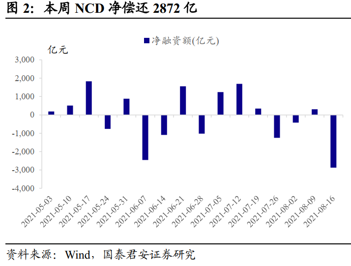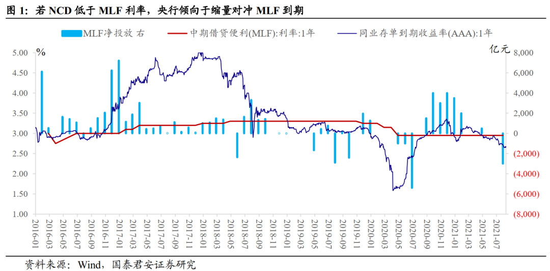理性上来说,考虑到7月份降准释放了1万亿资金,对冲当月MLF到期量后结余7000亿,对冲8月份到期MLF仍有余量。另外,历史上来看,若NCD低于MLF利率,央行倾向于缩量对冲MLF到期。