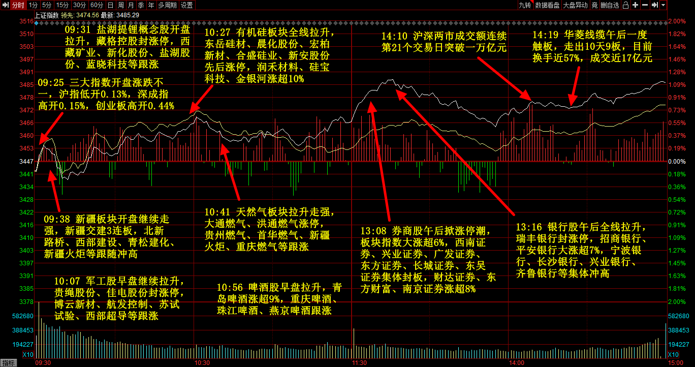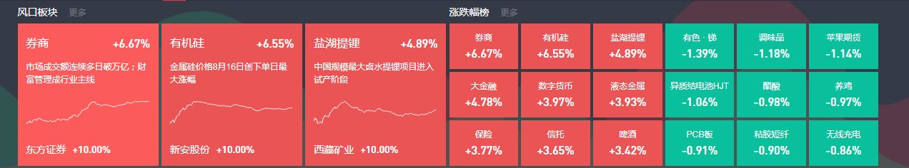 成交连续第21个交易日破万亿成为催化因素之一。此外像东方证券、广发证券等财富管理占比业务较重的个股率先涨停。