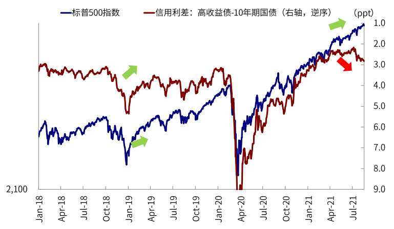 图表: 高收益债的信用利差近期有所抬升,与美股市场表现出现背离