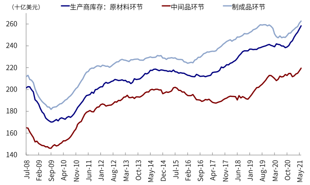 图表: 当前美国企业的产能利用率尚未完全修复,同时手里的原材料库存又相对较高