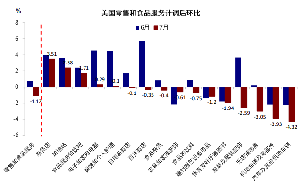 图表: 从7月的零售分项来看,汽车零售环比较6月继续回落