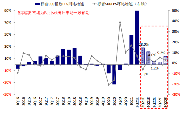 图表: 标普500指数2021年EPS一致预期同比增长44.5%,市场一致预期2022年同比增长9.1%