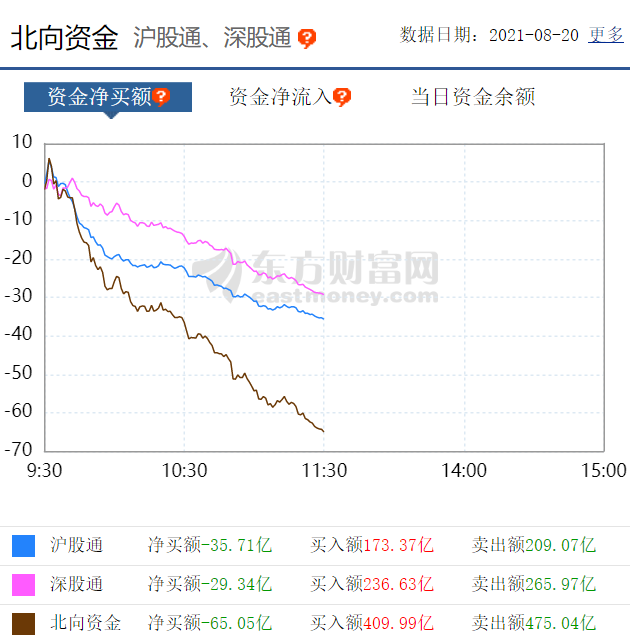 北上资金方面,继续呈现出大幅流出态势,半个交易日净流出超60亿元。