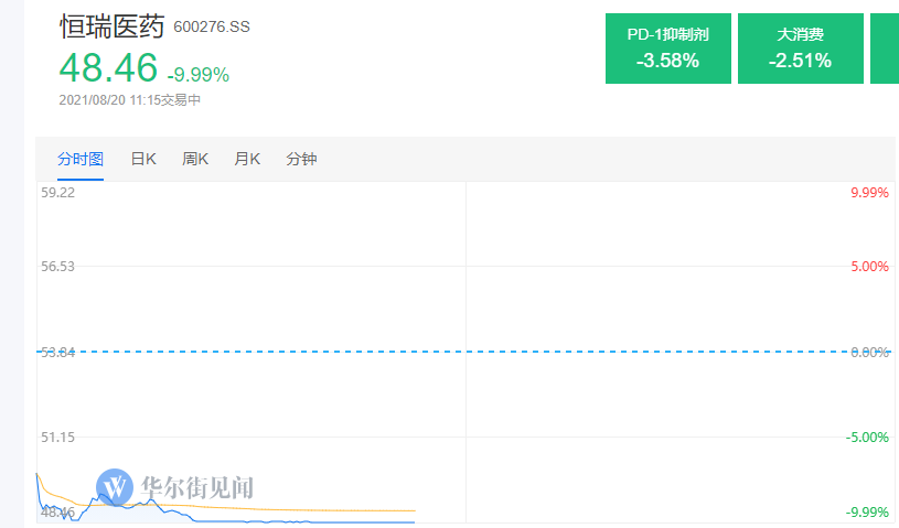 截至午间收盘,恒瑞医药封死跌停,成交超50亿。