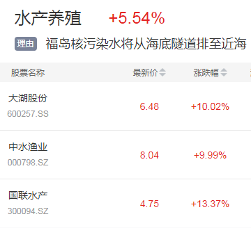 受此影响水产养殖板块异动,大湖股份、中水渔业等涨停。