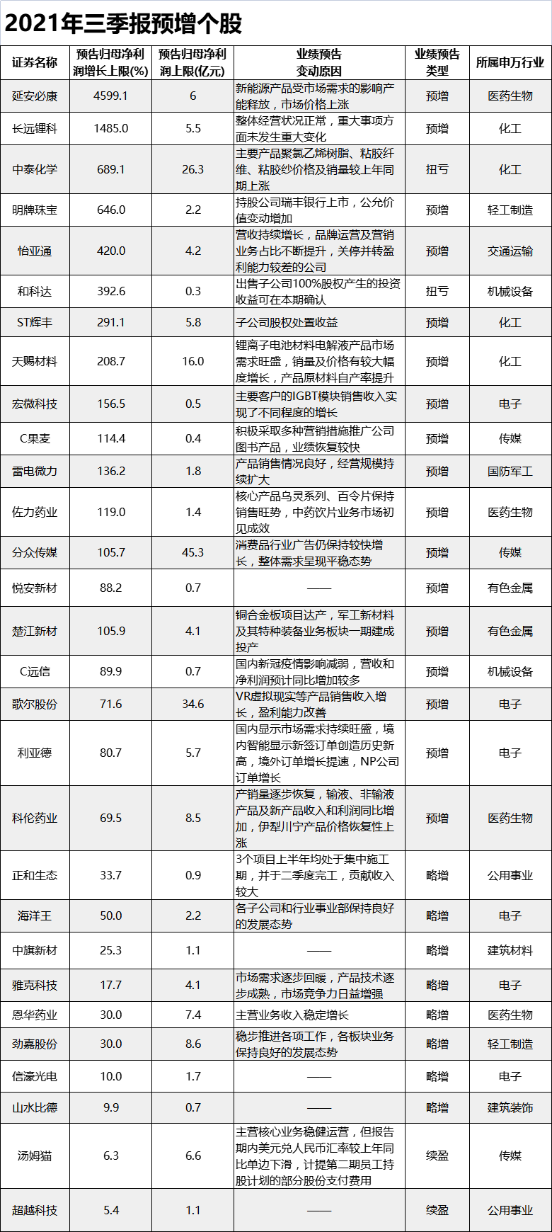 据统计,截至9月3日,两市共有33家公司预告了2021年三季报,其中有27家公司实现了正增长,占比超8成。