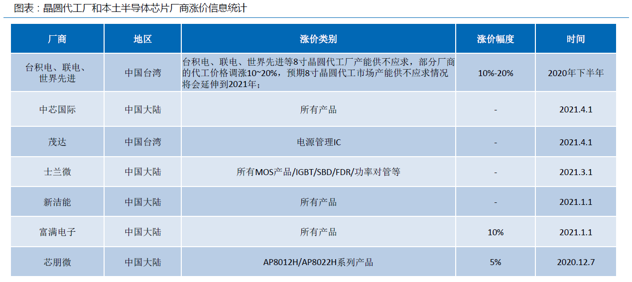 事实上,近期以台积电为首的多家晶圆大厂持续调涨报价。