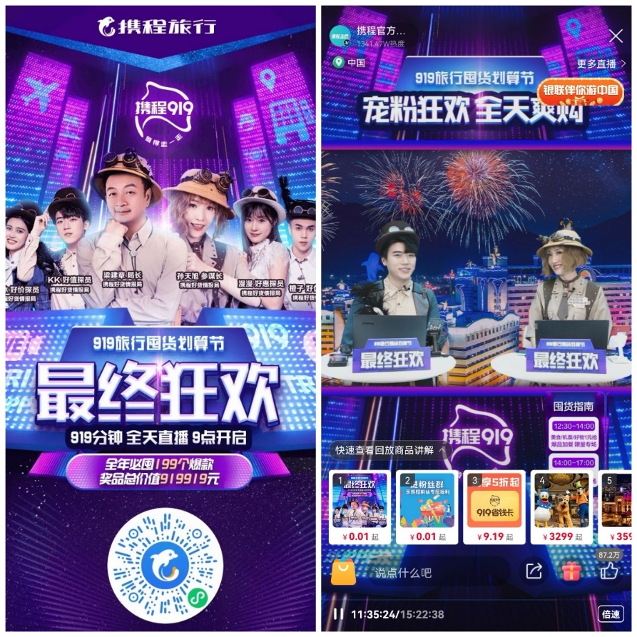 9月19日,携程发布首届携程919收官数据:累计囤货GMV达到4亿、预售核销率3倍于行业平均水平,商家收入相当于总GMV10亿+。其中,携程官方直播间观看热度超过6000万,成交额超过1亿。