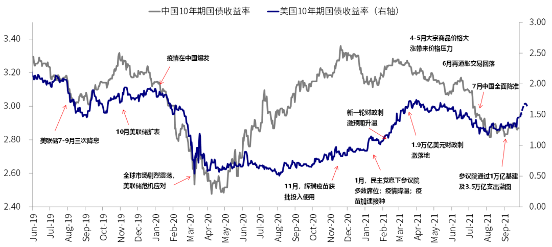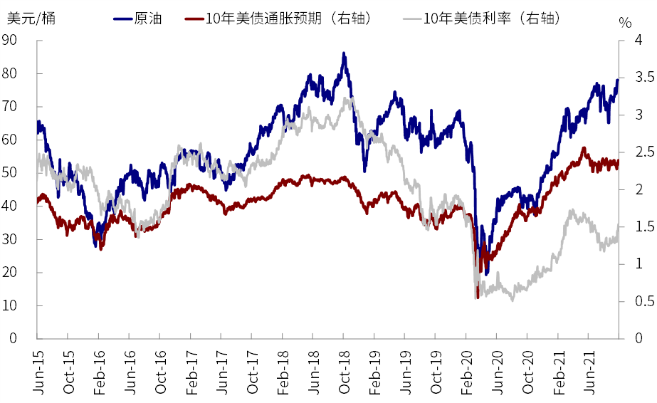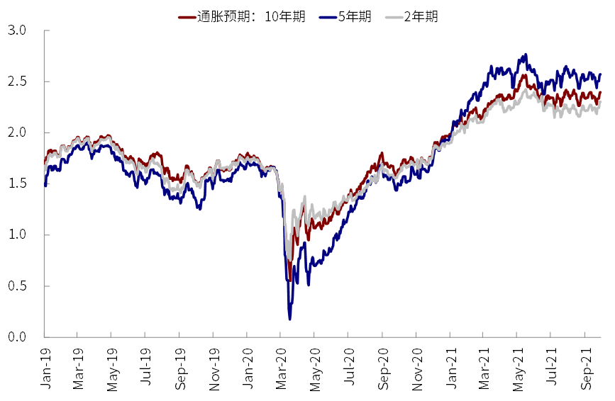 当然,近期疫情的再度改善是一个大背景,而油价的上涨和美联储主席鲍威尔关于通胀的点评(高通胀可能要持续一段时间再度回落)、以及债务上限问题我们认为可能暂时还不是主要因素,这一点从基本持平的通胀预期上看就不言而喻。