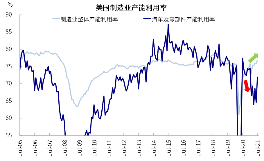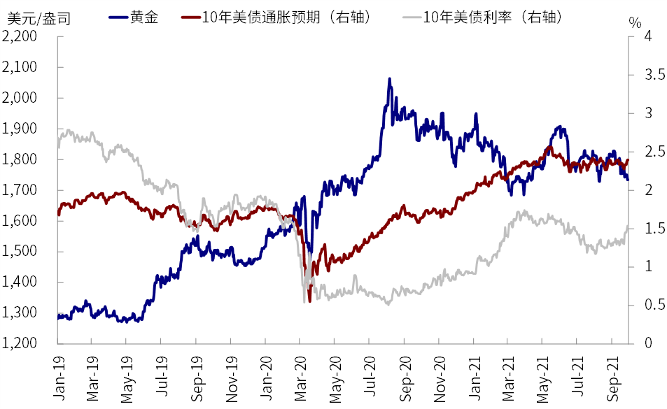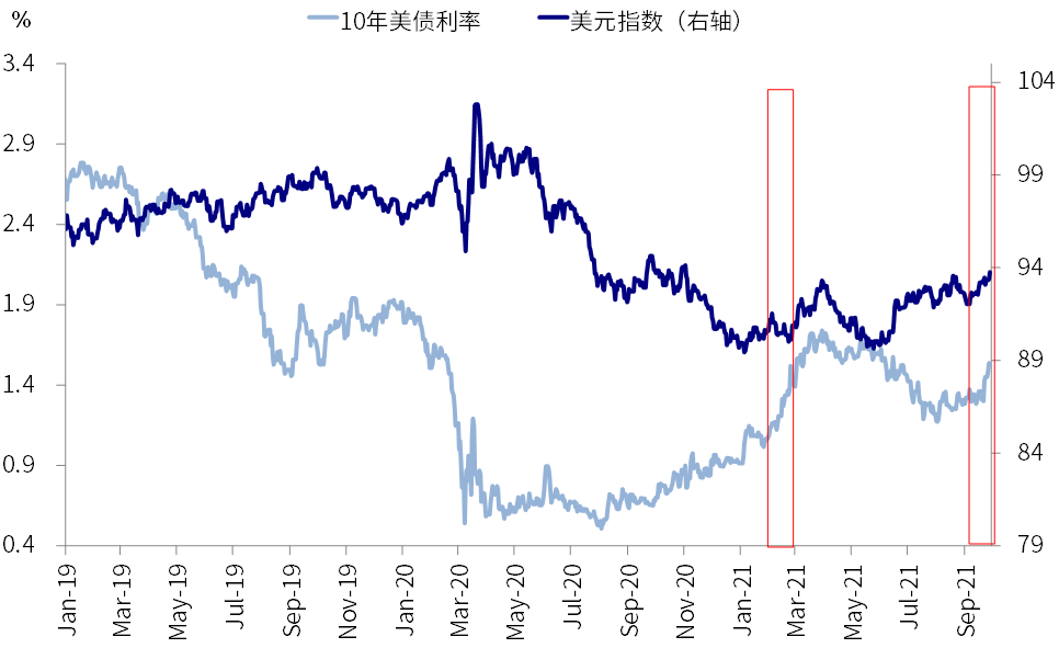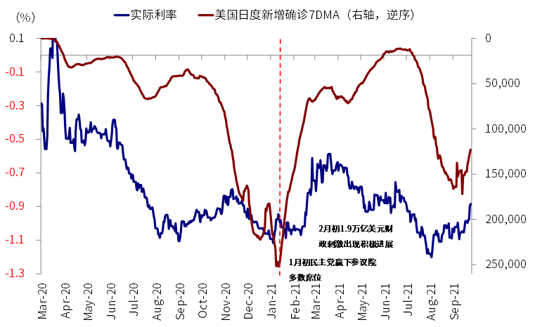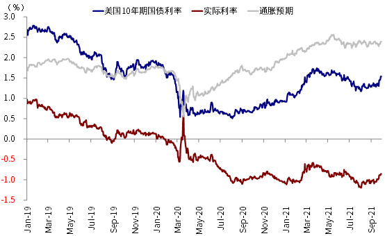 我们认为近期实际利率的上行可以从三个方面去理解:1)实际利率是定价被扭曲最为严重的资产之一,8月初一度创出历史新低,其被扭曲的原因是美联储大量购买和资金的持续涌入。那么,近期流动性退出预期的酝酿、叠加疫情见顶改善,足以触发实际利率扭曲定价的“纠正”;2)通胀预期逐步筑顶也表明全球经济周期已经过了去年底今年初增长加速最快的阶段(美国四季度可能还有环比改善),因此再通胀交易偃旗息鼓;3)实际通胀的走高和通胀预期的变化并非一回事。虽然高通胀还会持续、且局部甚至恶化,但美国通胀环比改善和二手车等供需矛盾的缓解是资产定价的边际更重要的因素,而并非单纯CPI的同比变化。
