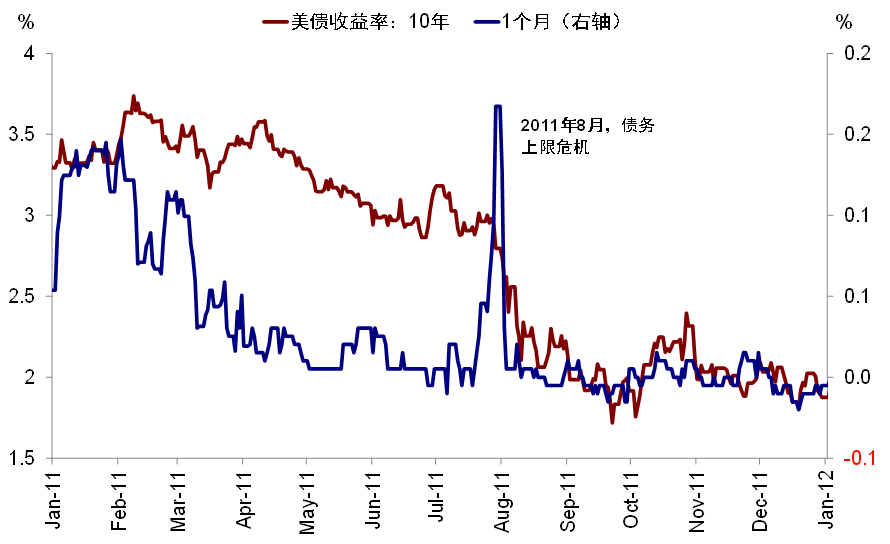 至于市场普遍较为关注的债务上限,如果出现逼近违约的意外风险,那么可能促成阶段性的避险而回落,2011年8月便是如此;而如果顺利得到解决的话,边际上TGA账户的再度升高和债券供给增加,则会对利率形成向上支撑。