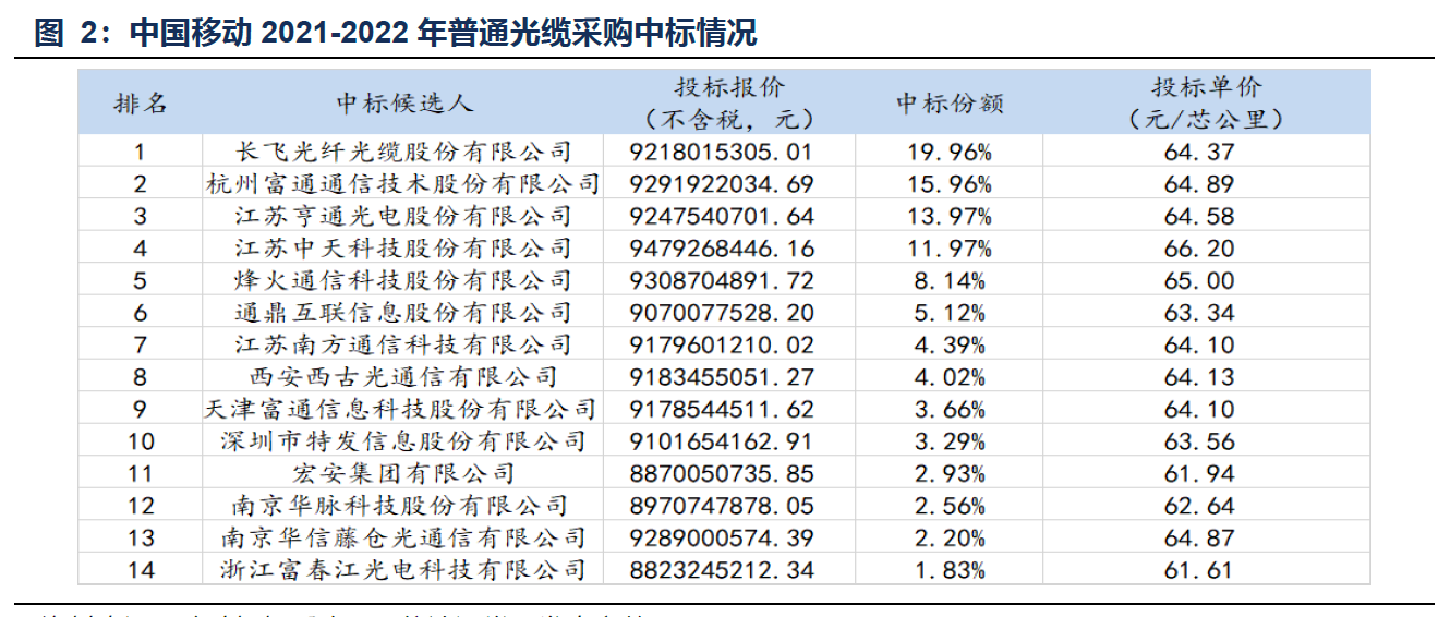 国盛证券表示,自2018 下半年起,电信运营商需求萎缩叠加前期扩产产能释放,光缆价格大幅跳水,经历了三年调整期。本次集采结果量价齐升,标志了光纤光缆行业景气度的底部向上。