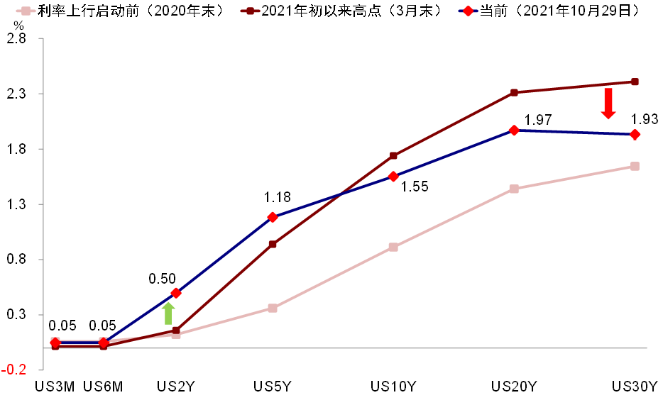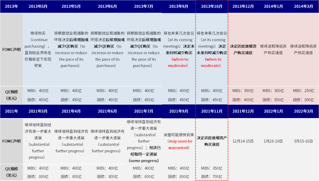 从本次宣布的方式(宣布11月和12月两个月规模,并预计未来每个月类似的步伐),那么对应的更多是前者,因此QE最终结束的时间大概率在明年6~9月之间。由于上次会议时,美联储已经暗示将于2022年中结束QE,因此这一速度基本符合预期。我们之前提示,相比减量,对于市场影响更关键的在与速度是否超预期,因为超预期的减量速度只会让市场担心是否美联储急于加息。因此,从这个角度看,这一担忧明显缓解。
