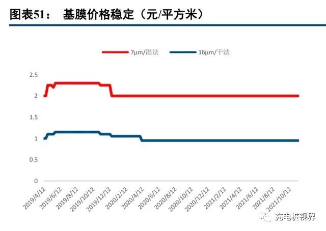 截止 2021 年 11 月均价,7μm 湿法基膜与 16μm 干法基膜价格分别为 2.00 和 0.95 元/平,较 2020 年平均价 稳定;7μm+2μm 涂覆隔膜和 9μm+3μm 涂覆隔膜均价分别为 2.40 和 1.95 元/平,较 2020 年平均价稳定。隔膜价 格处于较为稳定的区间,但预期边际向好。