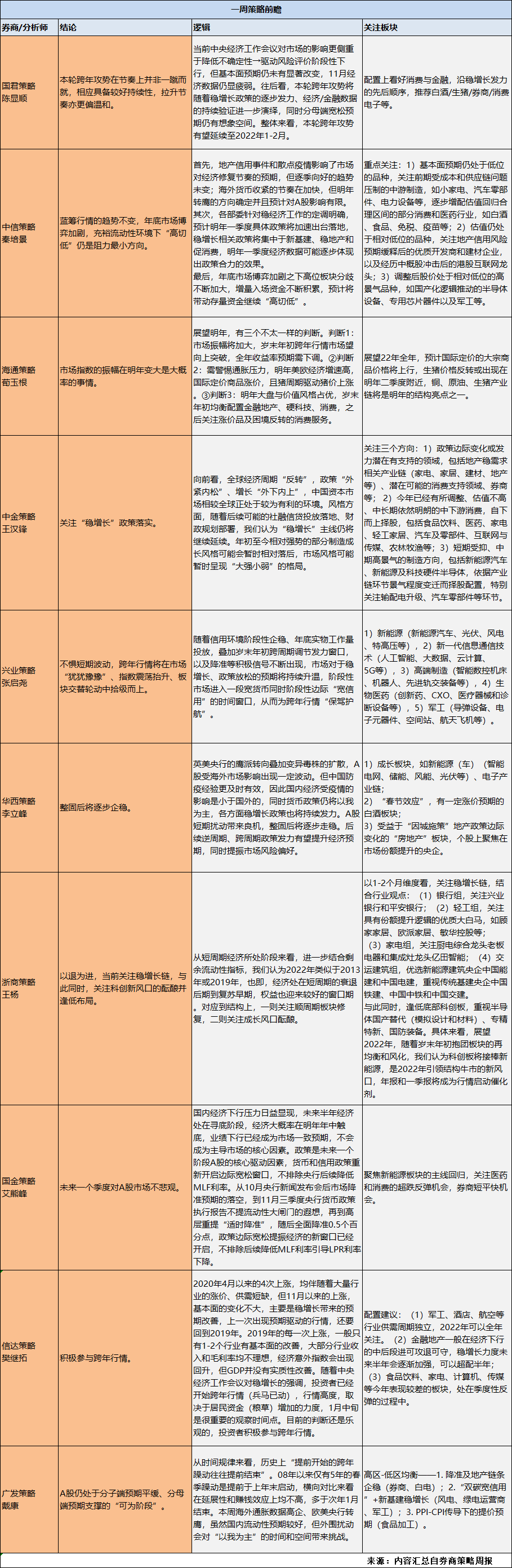 更多策略观点详见下表: