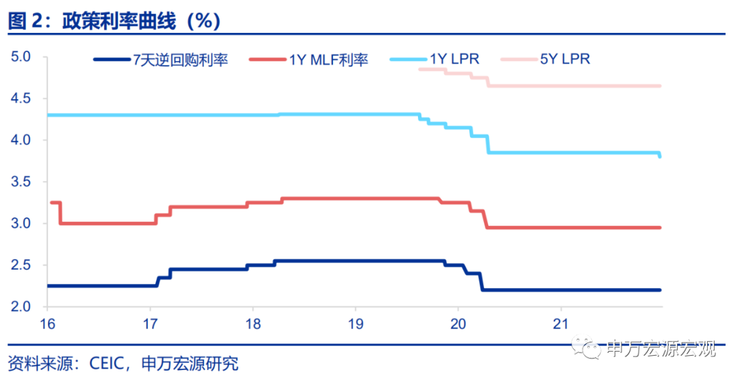 当前央行缓解MLF成本过高的问题,主要是通过降准置换MLF的方法实现,在12月刚刚降准,未来我们预计仍将持续降准的阶段,单边下调MLF利率的必要性不大。同时,以往的MLF利率下调都伴随着7天逆回购利率同步下调,如果明年再进行类似操作,则又面临我们在第四个问题中分析的约束,即可能引发市场对于货币政策过于宽松的预期。综合来看,我们仍预计2022年降准150BP以上,其中首次降准较为理想的时点或是1月的50-100BP,在此基础上全年有望置换7500亿左右的存量MLF,下调MLF利率的必要性不大。