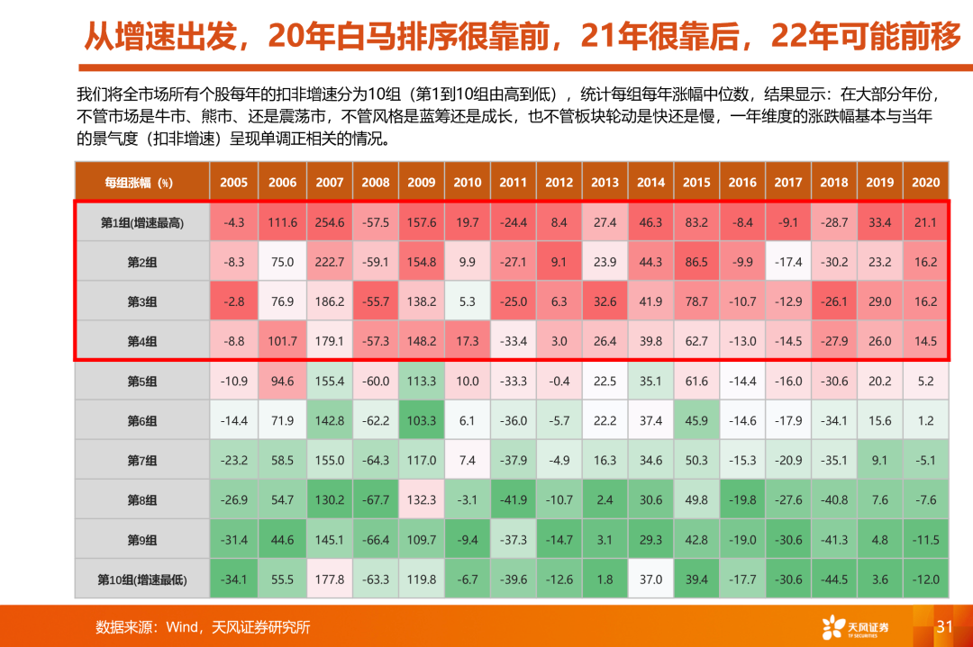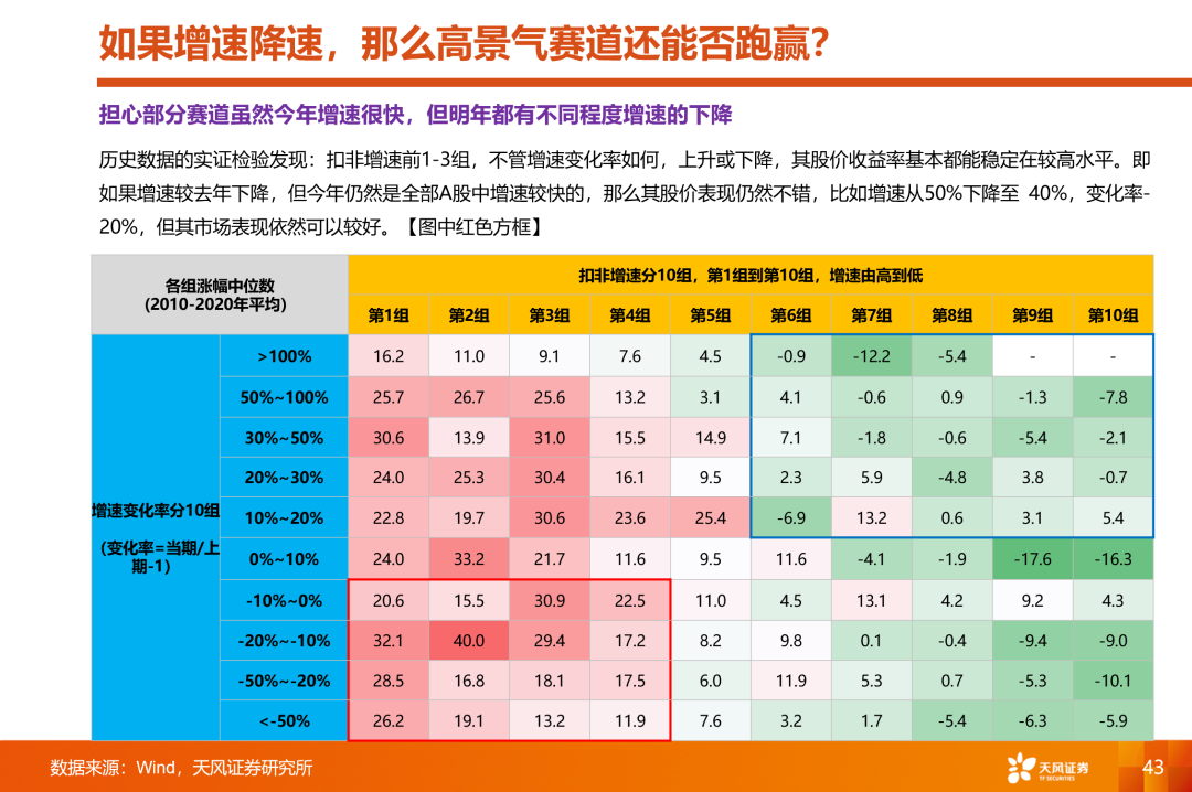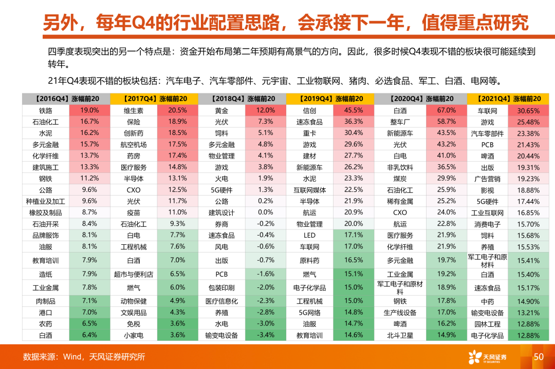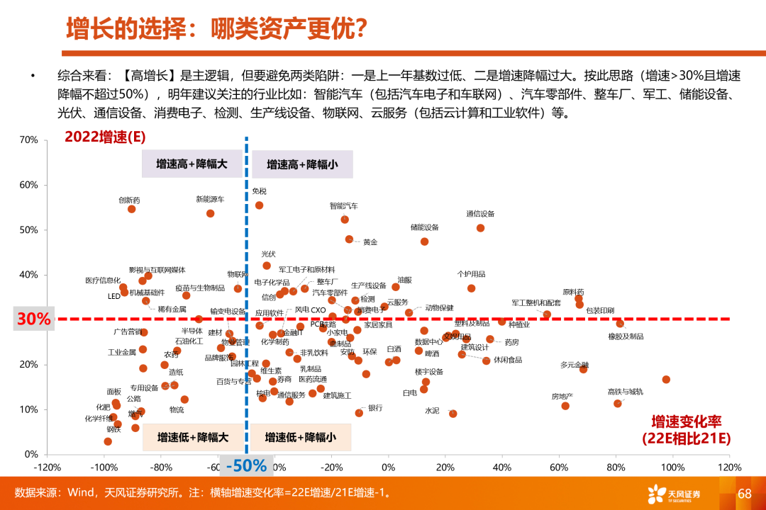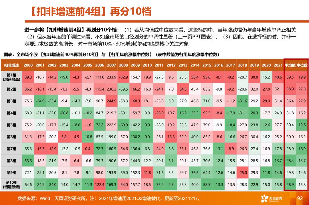 11、2022年的童话故事:当更稀缺的高景气邂逅更充裕的流动性——回测发现:更充裕的剩余流动性所追求的方向依次是【加速增长】≈【持续高增长】 ≈【减速增长-低降幅】>【困境反转】>【减速增长-高降幅】>【低速稳定】。与此相关的详细行业位置详见PPT68页。