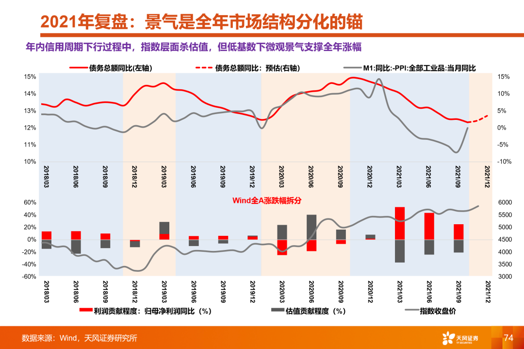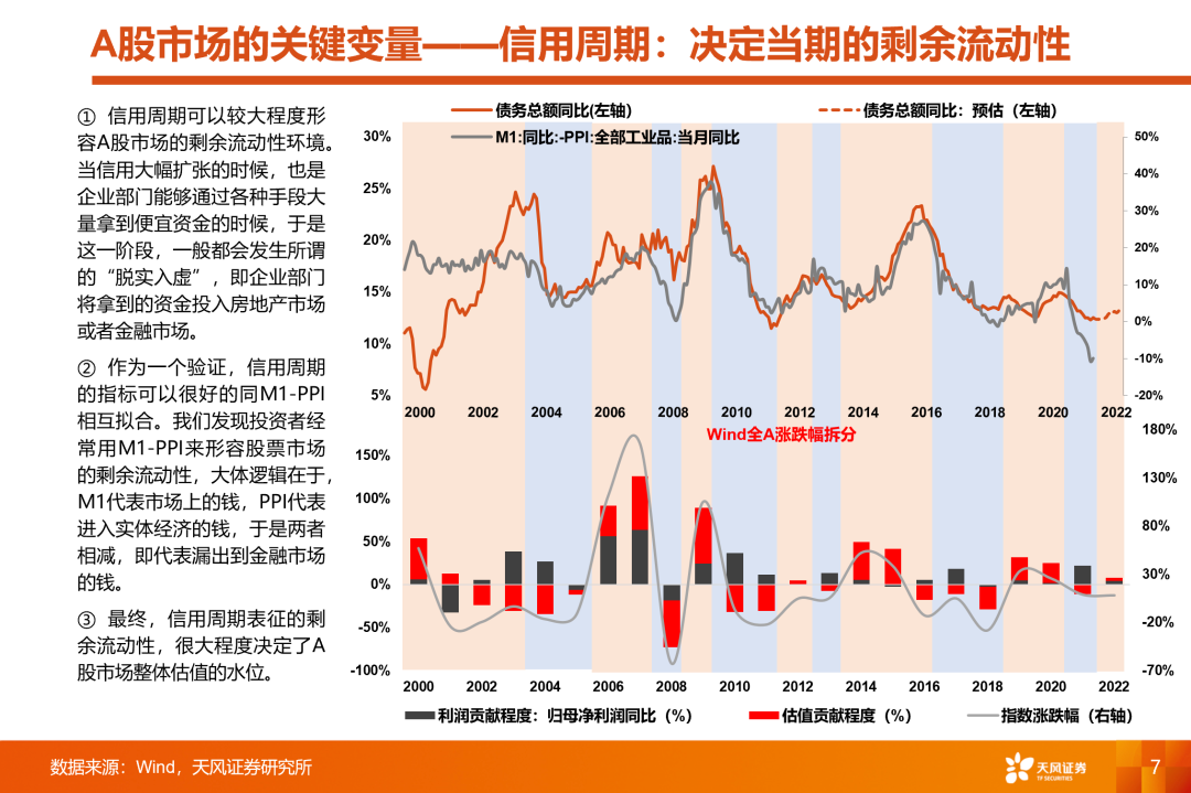 1、21年信用收缩,剩余流动性下降,A股整体杀估值;22年信用扩张,剩余流动性更充裕,A股估值整体有支撑。