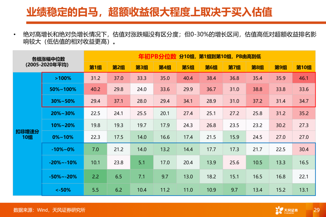 5、业绩稳定的核心资产(比如白酒、医药),其未来超额收益对当前估值敏感性较高,18年年底、19年年中、20年4月初都属于核心资产极端便宜的位置,21年2月中旬属于核心资产极端贵的位置,当前刚好介于这两者之间,因此给予标配建议。