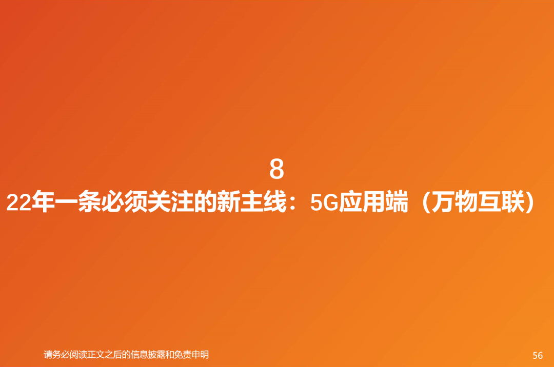 10、2022年需要关注的一个全新主线:5G的应用端,可能包括元宇宙、车联网、能源物联网、工业物联网等新型基础设施。