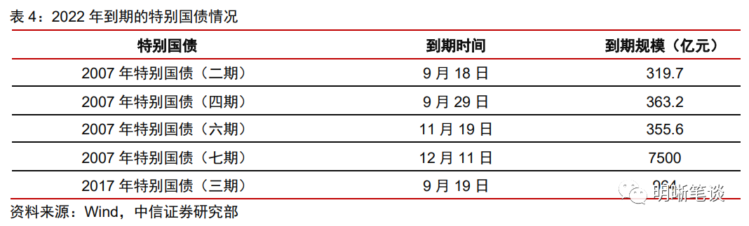 一是2022年共计约9500亿元国债到期,参考2017年滚动发行特别国债,财政部很可能进行续发。