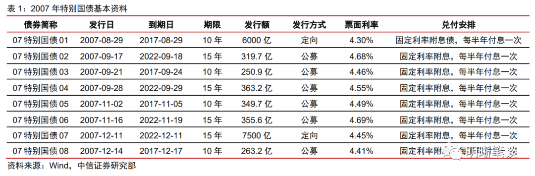 2017年,针对2007年发行的部分特别国债到期,财政部进行了续发。