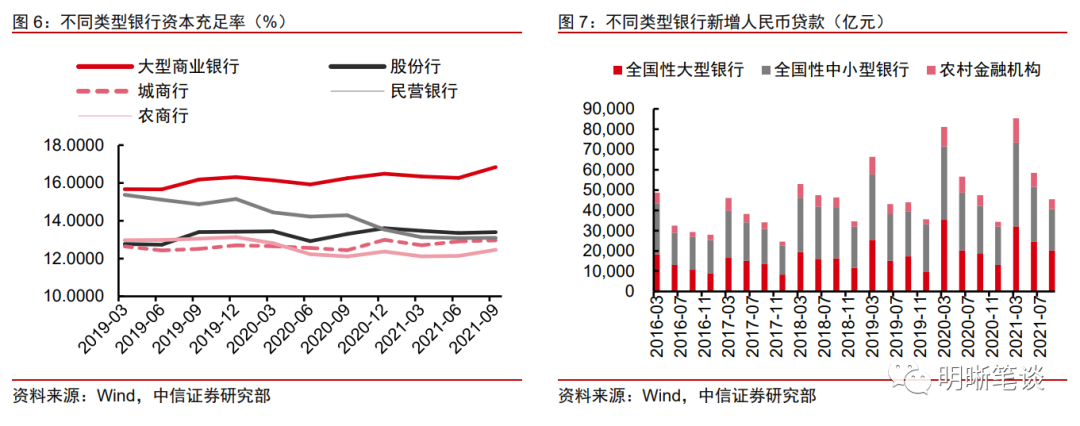 另一方面,从各类型银行的新增人民币贷款规模来看,中小型银行占有重要地位,中小银行资本实力的扩充有助于提升其信贷能力,更好的回归本源、服务实体。