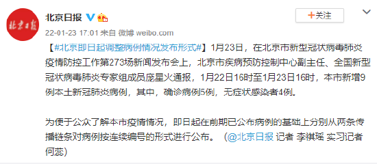 本文来源:北京日报 记者 李祺瑶 实习记者 何蕊,原文标题:北京即日起调整病例情况发布形式