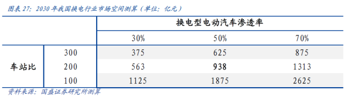 对于换电,国盛证券较为乐观,认为换电行业市场空间巨大,随着新能源车渗透率得到提升和车站比的优化,换电是千亿级规模赛道。