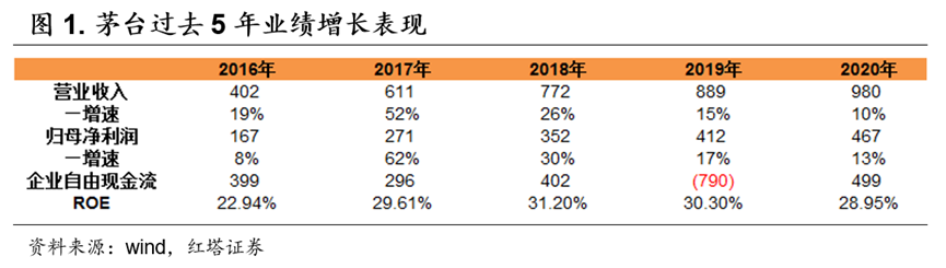 比如说茅台,可以说过去几年它的现金流创造能力是非常强的,过去五年的归母净利润和自由现金流的复合增长分别在29%和6%左右,只要没有重大的基本面或政策面的变化,考虑到基数效应,投资者大致会按20%左右的一个增速给他未来的业绩去做预测。