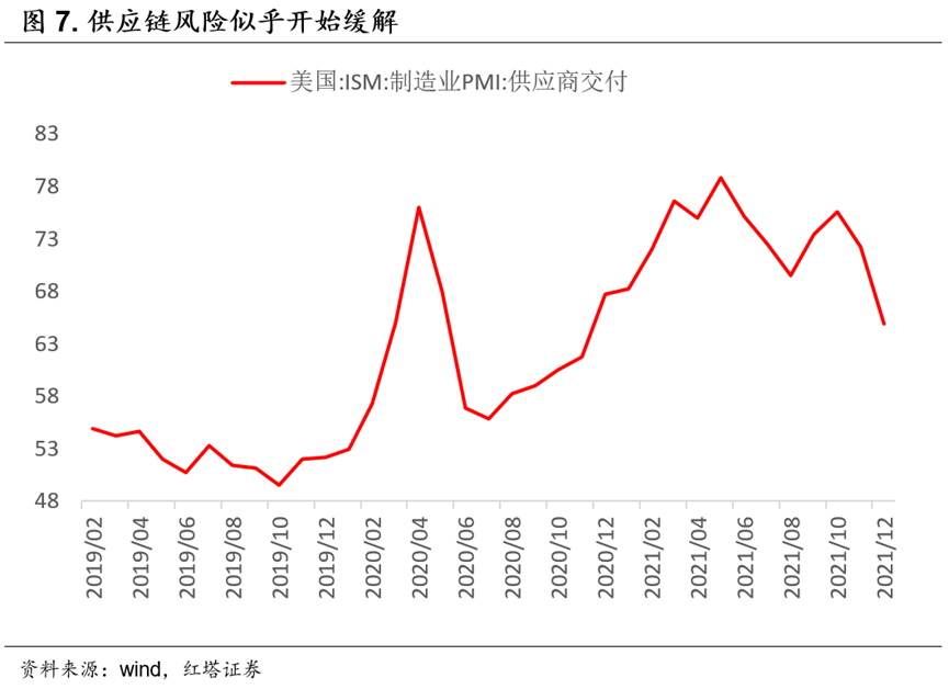 与此同时,美国的PMI供应商交付指数已经开始下降,中小企业资本开支预期也在修复,随着企业资本开支的修复,未来核心零部件、核心材料供应短缺的格局将在边际上有所缓解,二者均指向供应链风险已经没有那么大了。