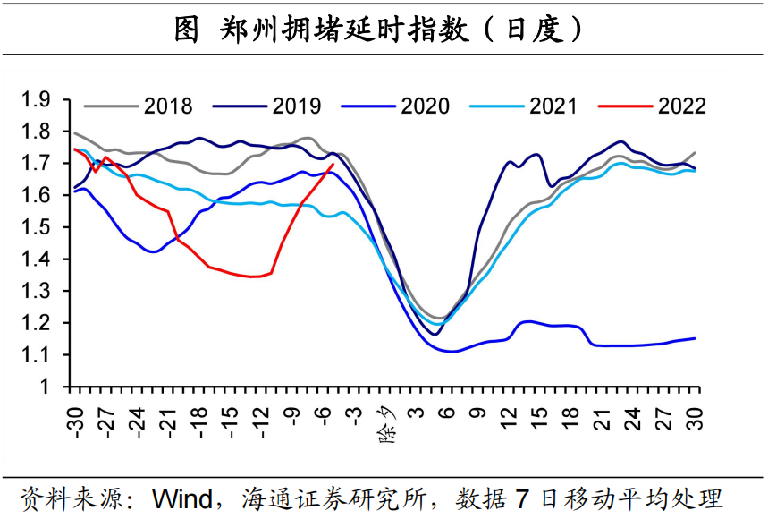 从市内交通情况看,出行也与疫情的散发情况有关。今年春节前一个月,北京的拥堵延时指数就已经明显弱于常年同期。再如郑州,由于前期受疫情困扰,拥堵延时指数回落至近年低位。不过随着当地疫情的缓解,出行情况已经较快恢复正常。