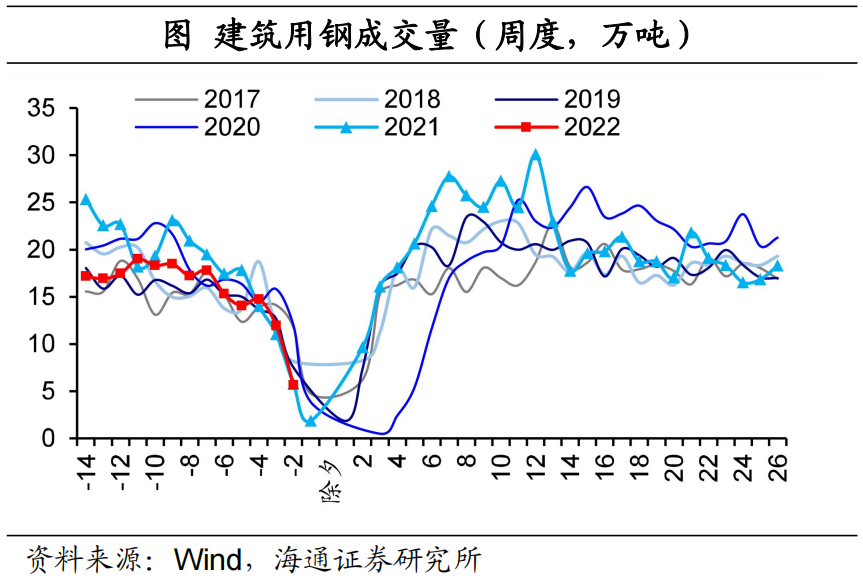 和工业生产相似,投资活动也会因春节人群返乡的减少受到提振。从水泥出货率看,去年除夕前的降幅弱于之前同期,而在除夕之后的反弹明显偏快。此外,建筑用钢成交量的走势也呈现相似的变化。