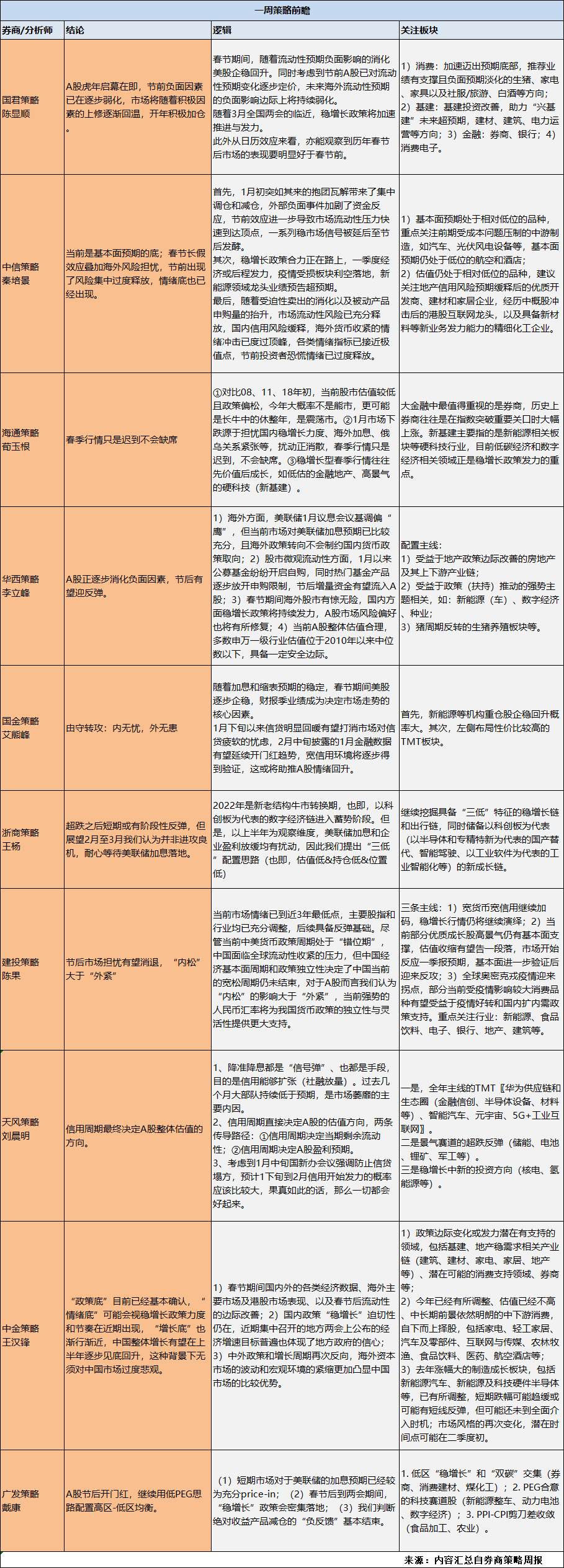 本周分析师观点较为一致。多数声音认为节前的负面因素已逐步弱化,春季行情只是迟到不会缺席。