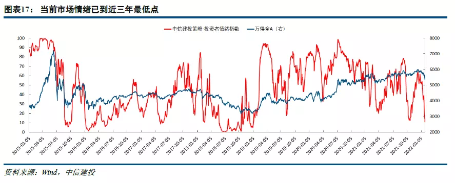最后,随着受迫性卖出的消化以及被动产品申购量的抬升,市场流动性风险已充分释放,国内信用风险缓释,海外货币收紧的情绪冲击已度过顶峰,各类情绪指标已接近极值点,节前投资者恐慌情绪已过度释放。