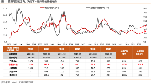 天风证券研报指出,从过往信用与估值的走势来看:信用扩张时,估值向上;信用收缩时,估值向下。