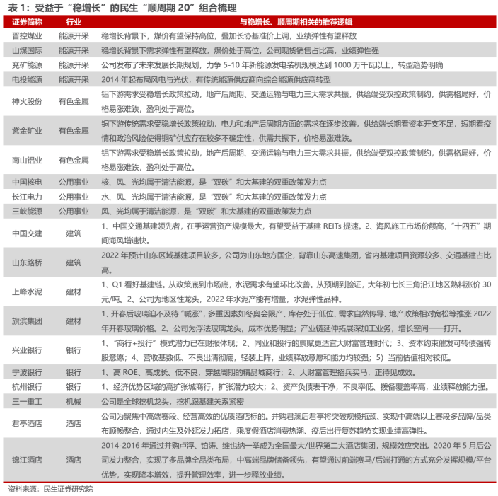 此外,民生证券还整理了如下“顺周期20”组合供大家参考。
