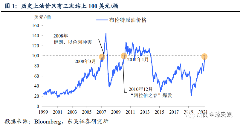 本文作者:东吴证券邵翔 陶川,文章来源:川阅全球宏观,原文标题:《以史为鉴,原油站上100美元后如何演绎?(东吴宏观陶川、邵翔)》。