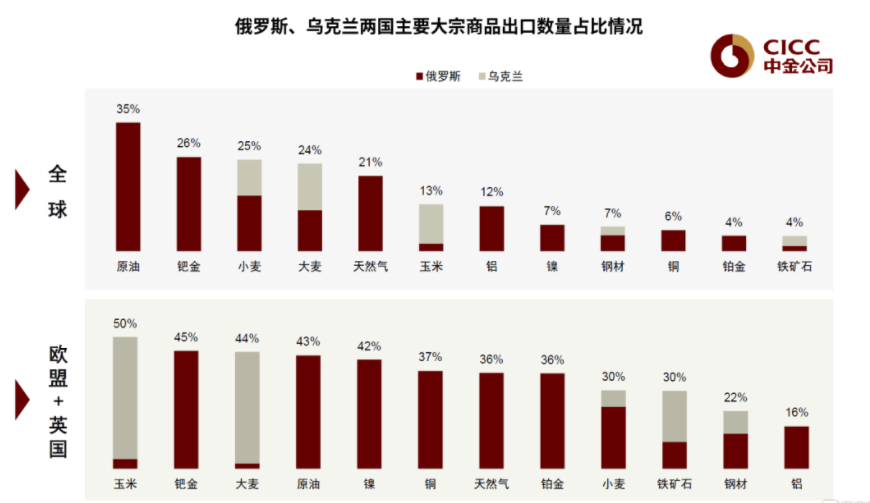 数据显示,乌克兰和俄罗斯是全球重要的谷物出口国,其中小麦出口占比达25%、大麦出口达24%、玉米出口达13%。