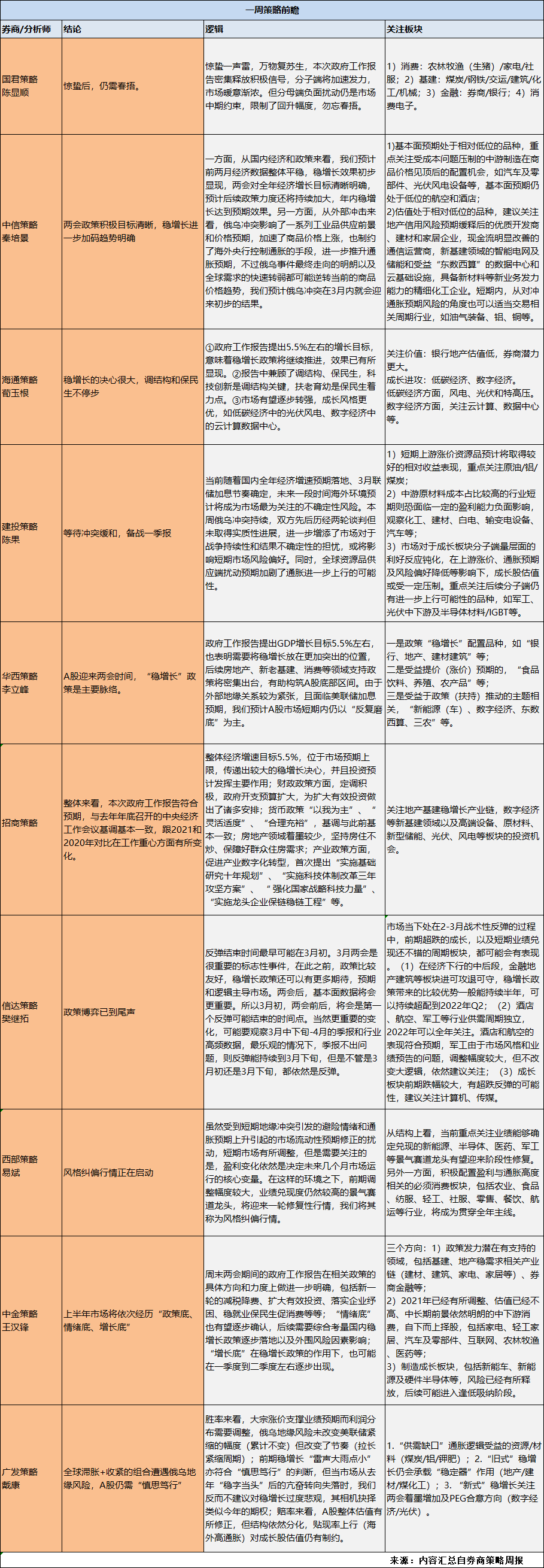 中信策略认为,两会政策积极目标清晰,稳增长进一步加码趋势明确。