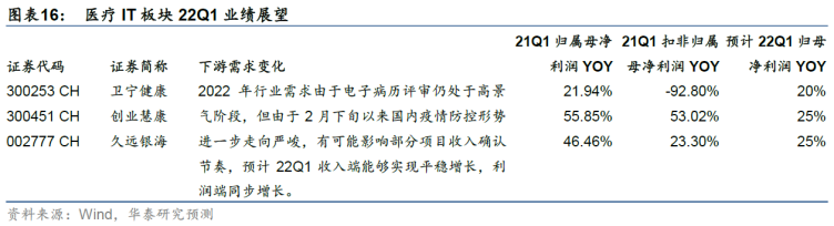 电子病历评审截止加速需求释放,有业绩加速可能,华泰证券预计22一季报收入端能够实现平稳增长,利润端同步增长。