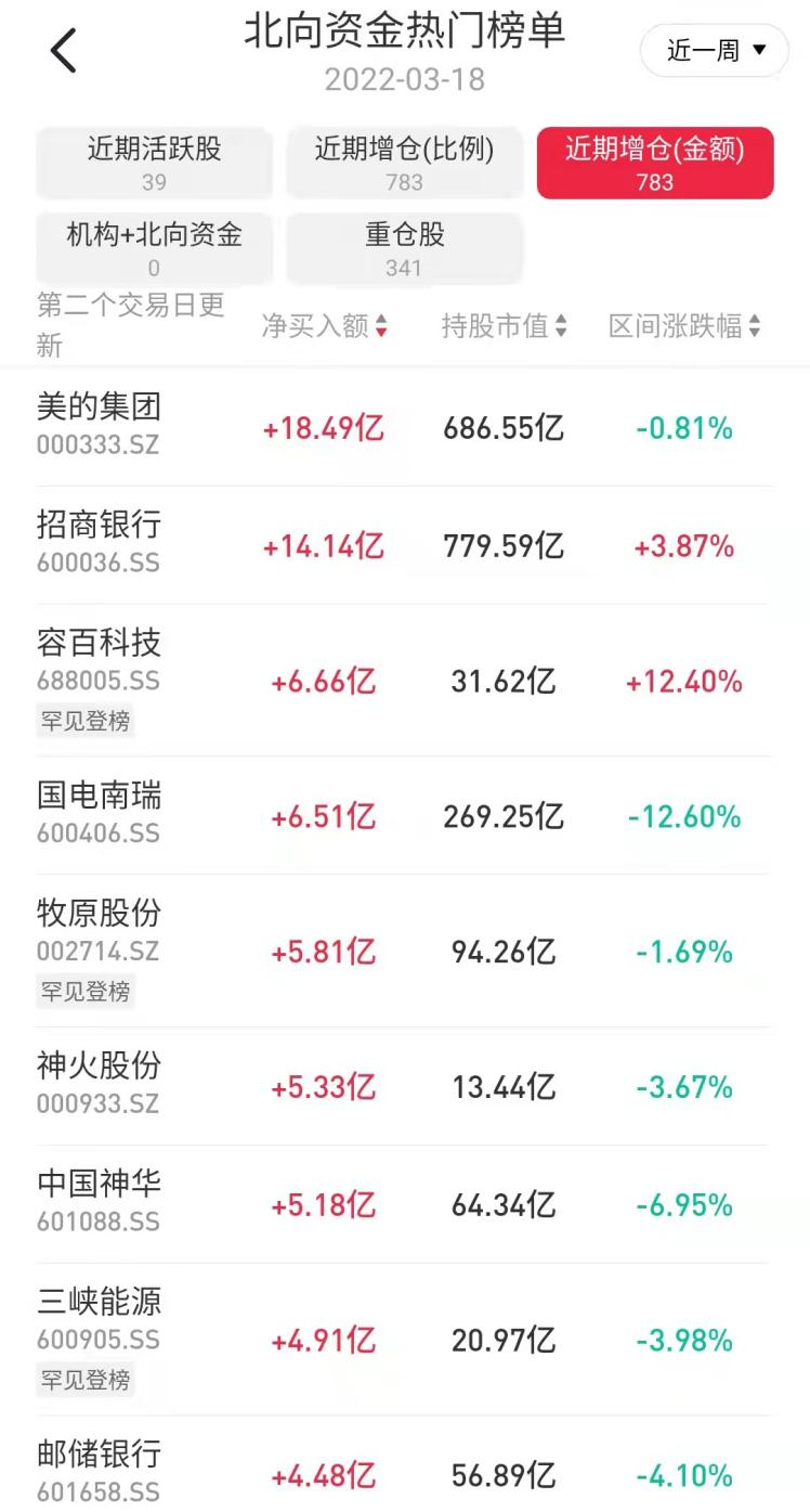 从增仓金额上看,白马股美的集团以18.49亿元的金额被加仓居首,此前曾发布拟25亿元-50亿元回购股份的公告,回购价格不超70元/股。并于上周一完成了首次回购,金额超1.7亿,其中最高成交价为59.00元/股,最低成交价为57.46元/股。