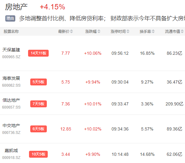 3月30日,房地产板块再度领涨两市,天保基健强势涨停,14天11板,海泰发展5天5板,信达地产、中交地产等也是集体连板。