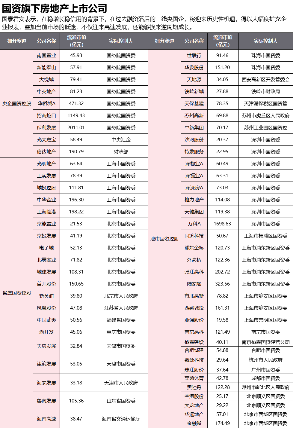最后,这里再附上实控人为国资委的房地产公司。